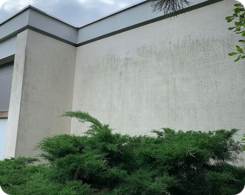 Nettoyage professionnel des façades sans haute pression, pour éliminer algues, mousses et salissures tout en préservant les matériaux.